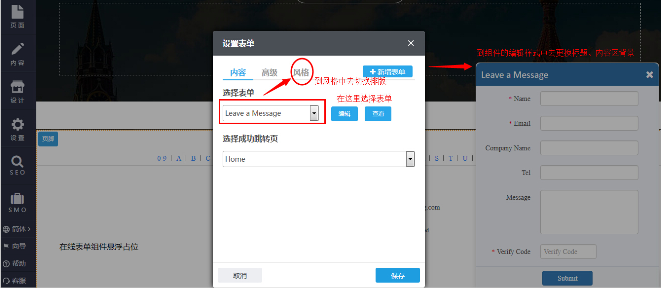 选择成功跳转页:访客填写表单中要求的信息之后,然后提交信息,提交成功之后跳转的页面。如果不设置的话,默认会跳转到网站首页。