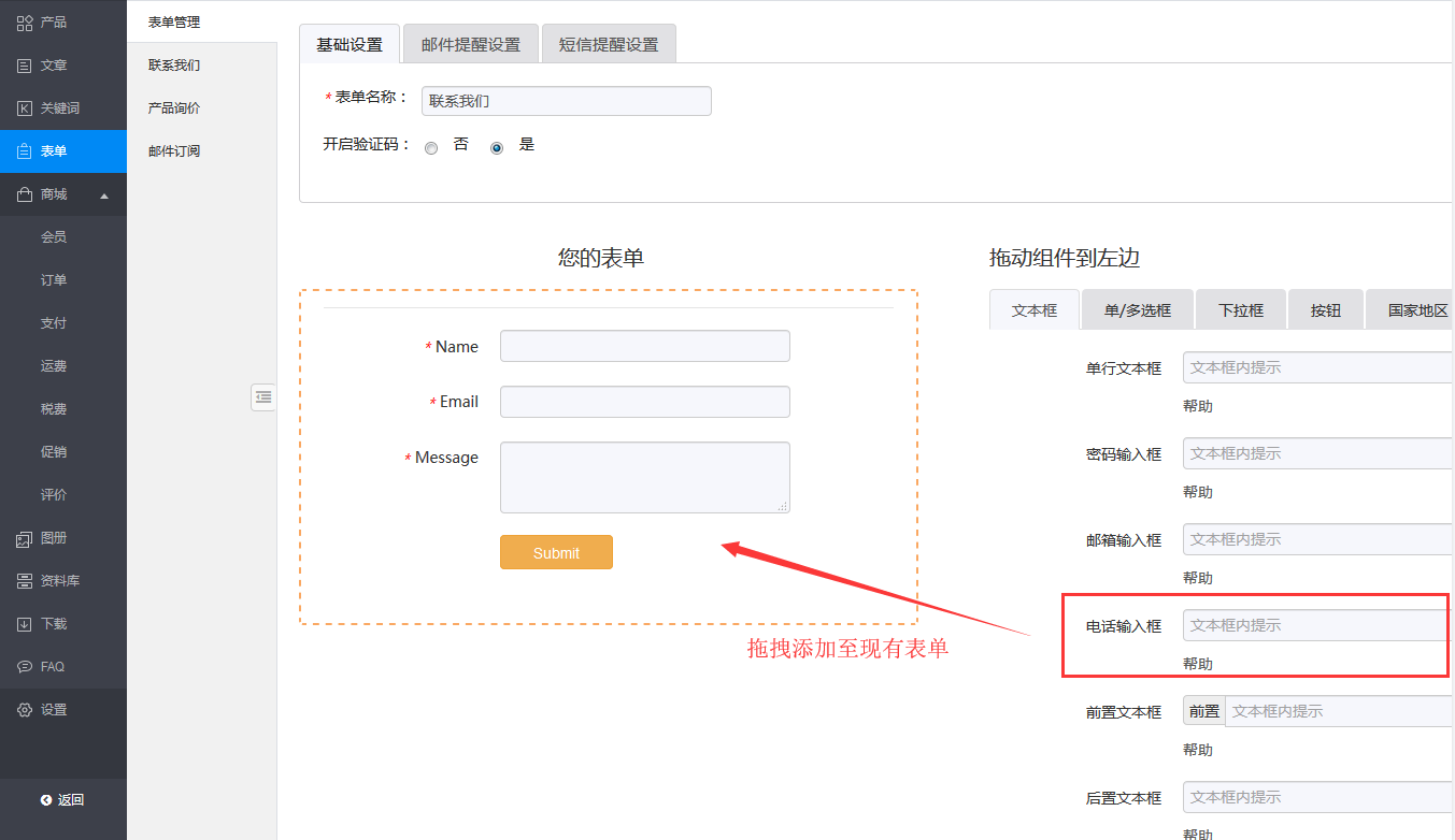 4.后台表单配置项增加“电话输入框”