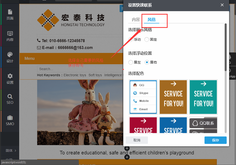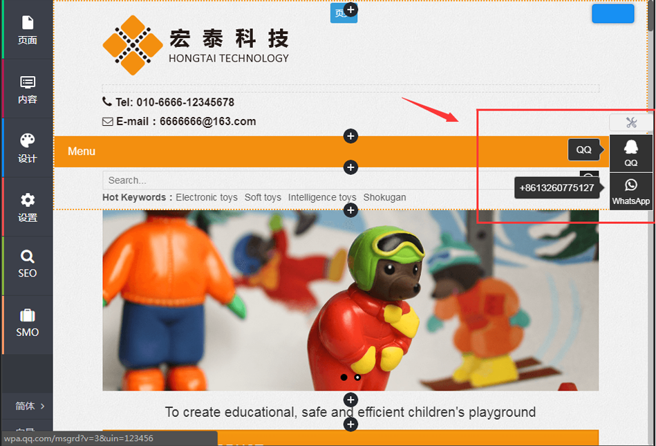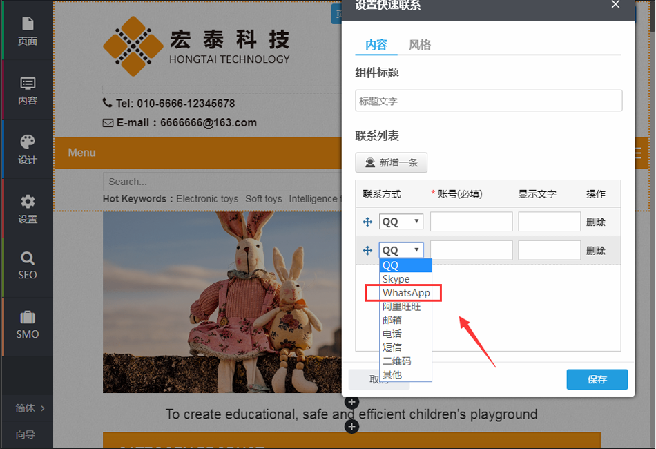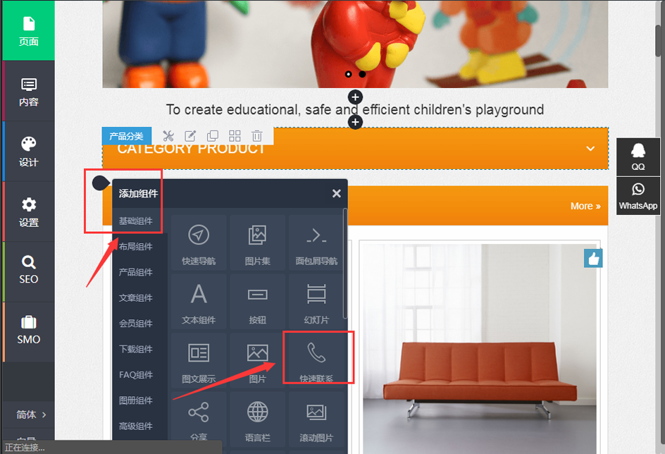 3、如果需要更加详细的编辑快速联系组件设置方式:单击如何更加详细编辑快速联系组件