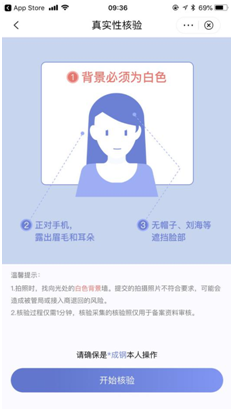 根据界面提示,上传资料后,请根据APP页面提示,通过人脸识别完成真实性核验。