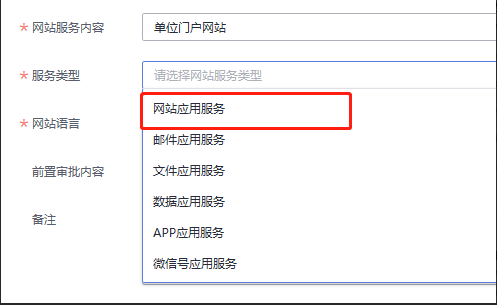 5、在填写网站信息的时候,注意:网站服务内容选择单位门户网站,服务类型选择网站应用服务
