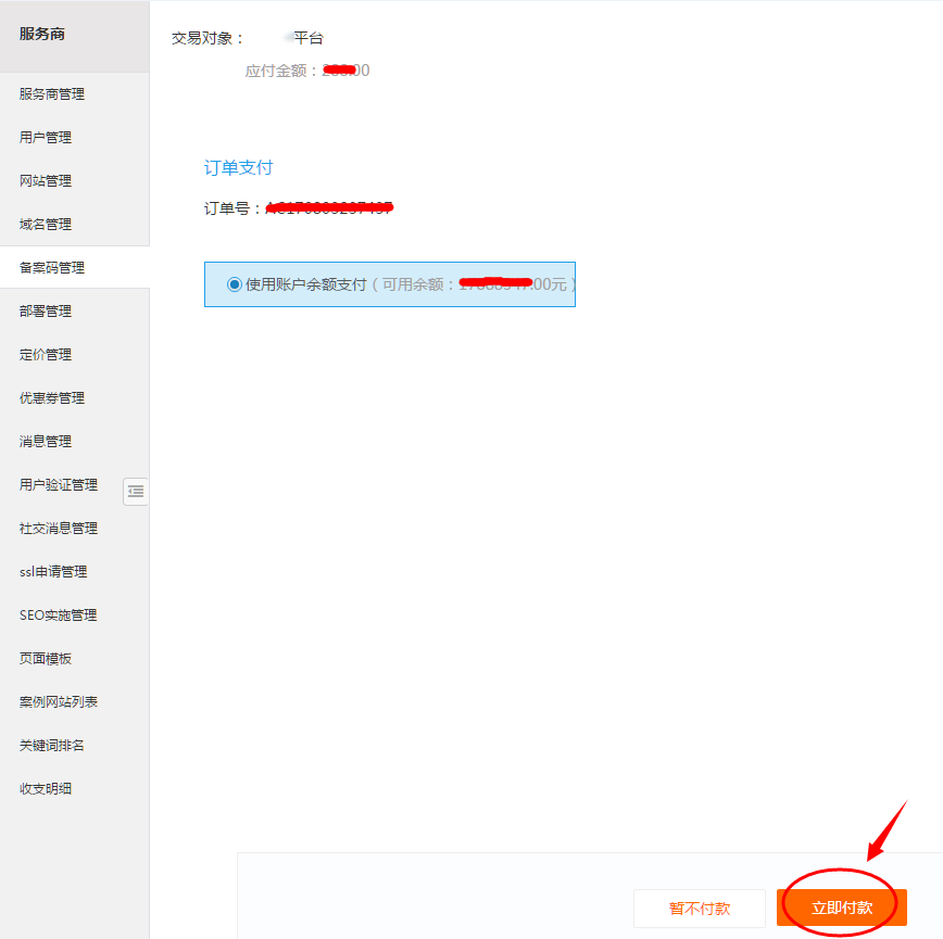 3)单击“立即付款”,支付款项。