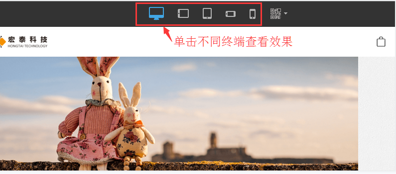 然后可以单击“预览”按钮查看不同终端下展示的效果,如果不合适可以到后台再做修改;