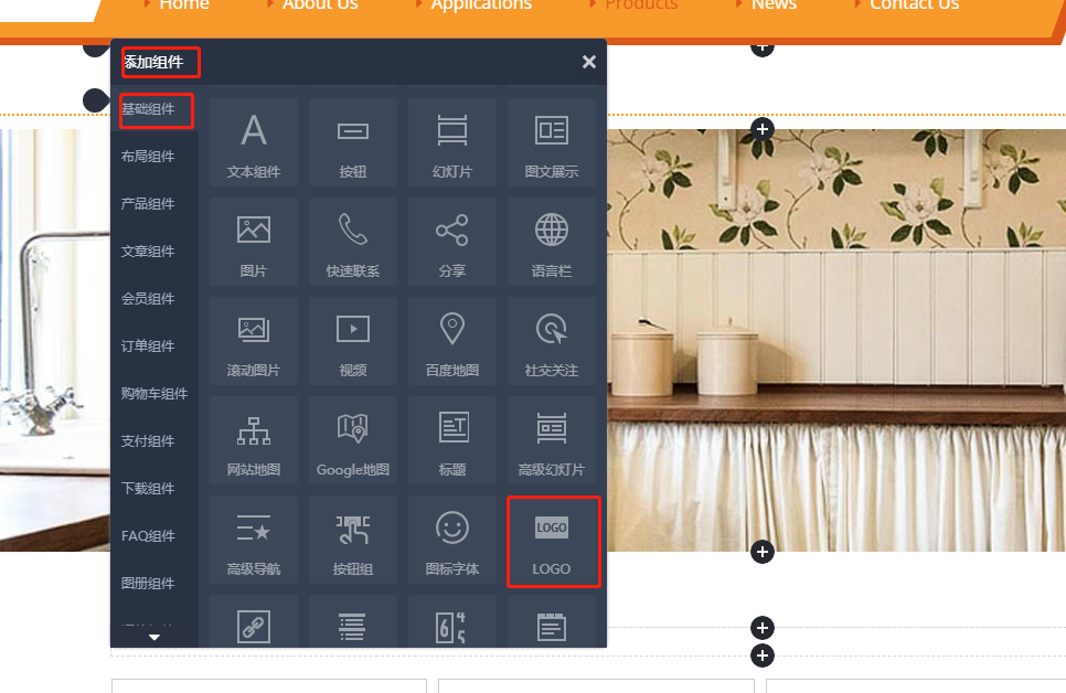 Step1:添加LOGO组件,LOGO组件在基础组件中;