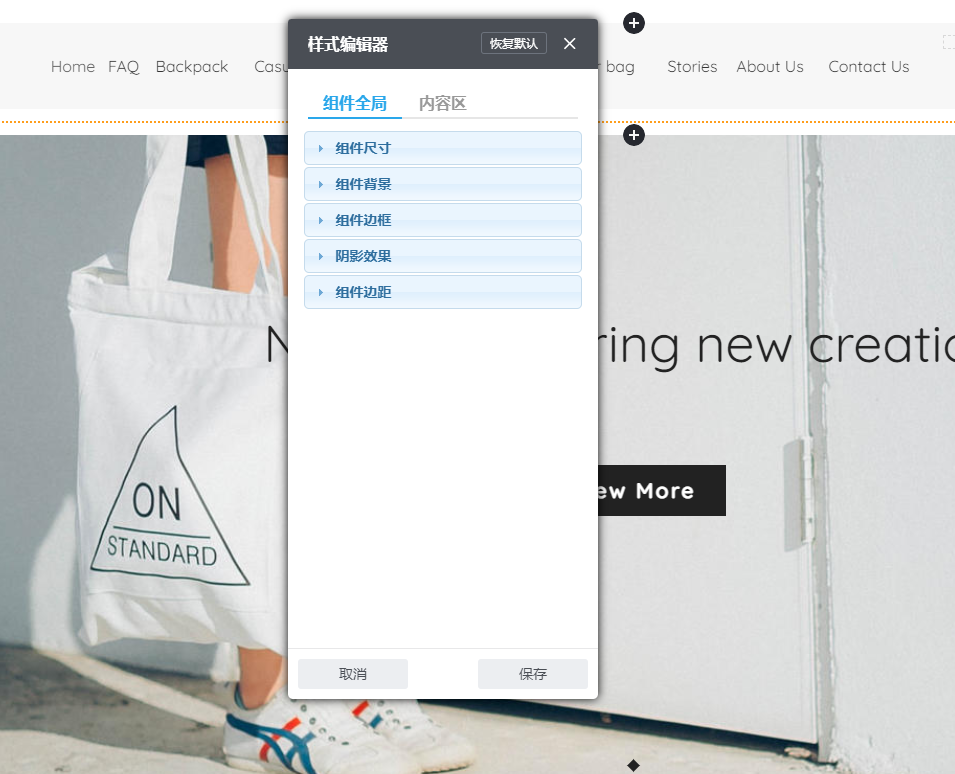 Step3:在添加好LOGO组件之后,可以进行样式编辑,调整组件的尺寸,背景,边框阴影效果,组件边距等。