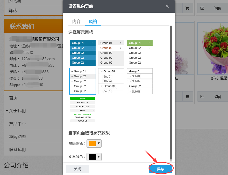 组件的内容、风格设置好以后,单击设置框右下角的“保存”按钮;