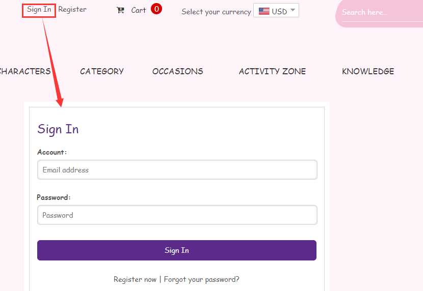 1.为了模拟实际客户的购买流程,建议卖家在自己的网站上线后,到前台注册一个会员账号,如果已有会员账号请直接登录,登录成功后页头会自动切换成登录后的会员信息状态;