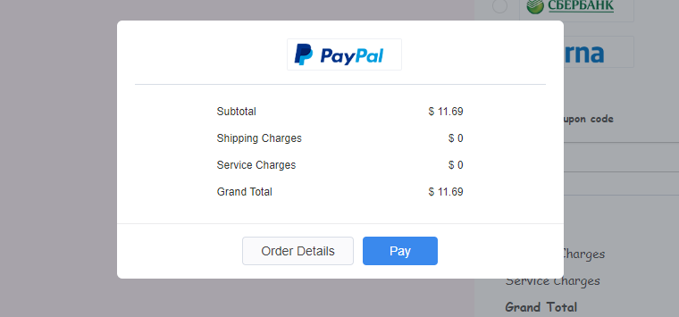 4.订单提交成功就进入到支付环节,根据后台开启的支付方式选择支付,以下我们选择Paypal支付,再次确认支付金额并点击【Pay】跳转到Paypal支付的页面;