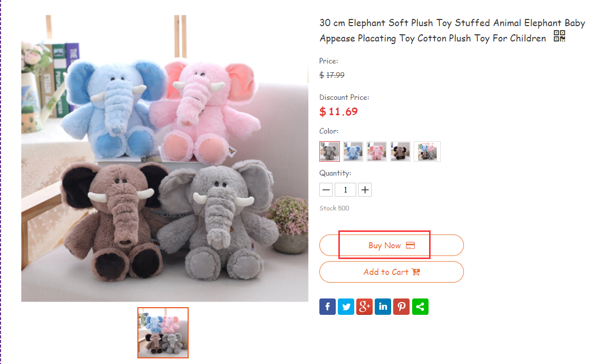 2. 为了测试在线支付的需求,商家选择商城任意一个产品点击购买,如下截图所示示例效果: