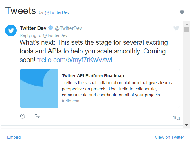 Twitter展示代码分为三种:嵌入推文、嵌入时间线、嵌入“分享”按钮、嵌入“关注”按钮