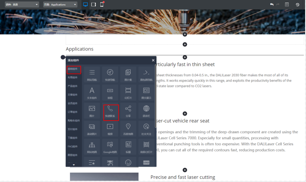 Step1:首先需要添加组件,点击“基础组件”中的“快速联系”组件