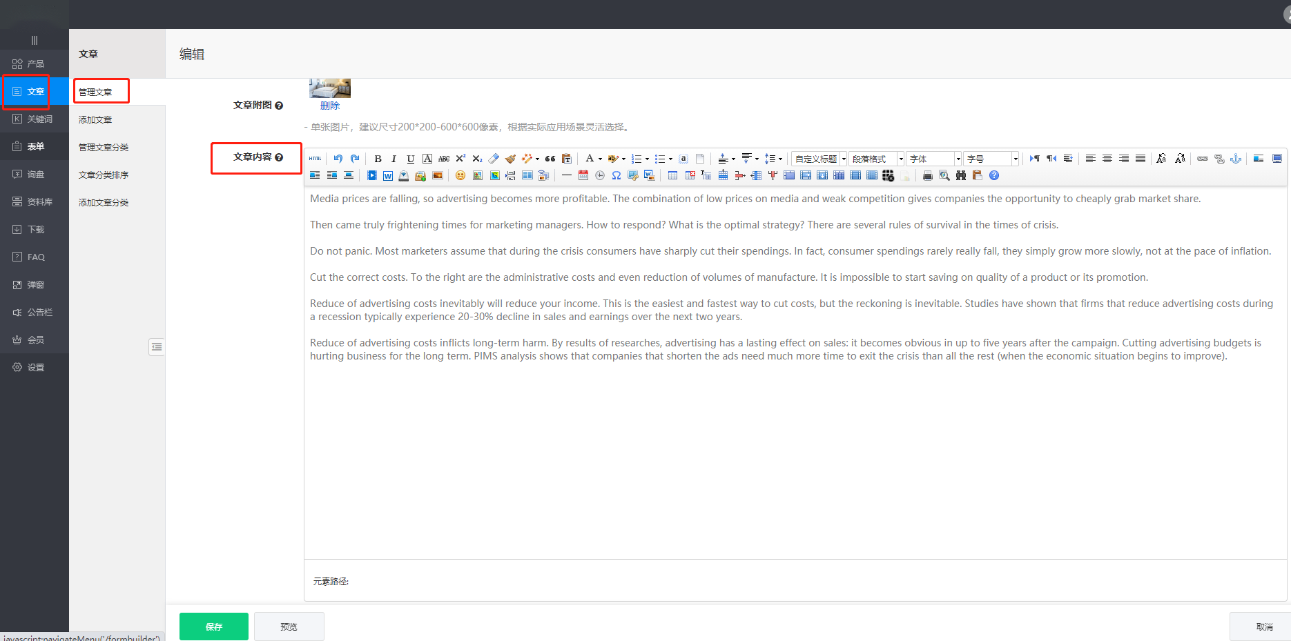“王婆卖瓜,自卖自夸”,每一个商人都应该是合格的王婆,现在来随我看看怎么在咱们网站上用丰富多样的方式来展示您的产品吧!在程序猿小哥哥的支持下,咱们产品页面支持添加文字、图片、表格、文档、视频,这些内容支持多页签展示。详细使用攻略如下: