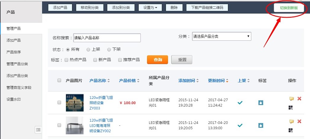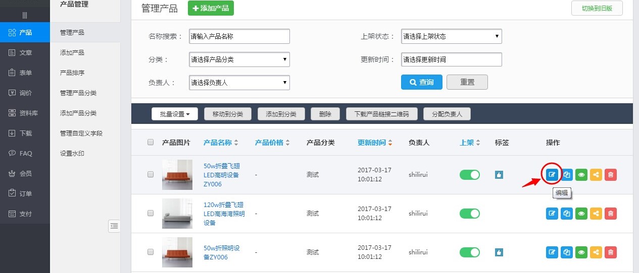 如果您目前使用的是旧版,请切换到新版,然后找到相应的产品,进入编辑页面: