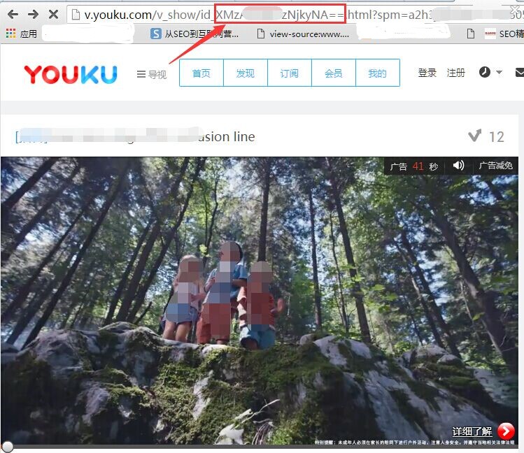 第2部分:取这个视频的id,打开视频播放页面,从页面URL中获取id,不同视频id不一样,如下图所示部分: