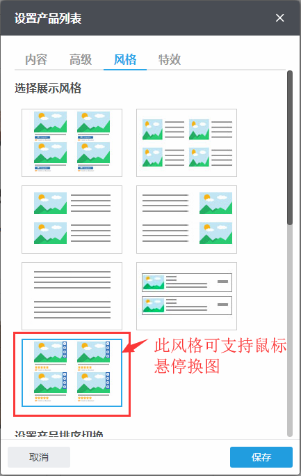 8、产品列表组件新增风格,支持鼠标悬停更换图片
