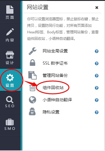 如果需要恢复已经删除的组件,可以到组件回收站中,找到对应的组件,然后执行【还原】操作,即可恢复此组件到原有的页面上,通常会位于页面的最底端。单击查看如何恢复组件?