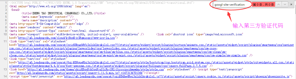 打开网站,用快捷键ctrl+U可以打开源代码页面,然后用快捷键ctrl+F键打开搜索框,输入添加到支点后台的代码,若搜索到了,就说明添加成功了,搜索不到就表示没有搜索成功。