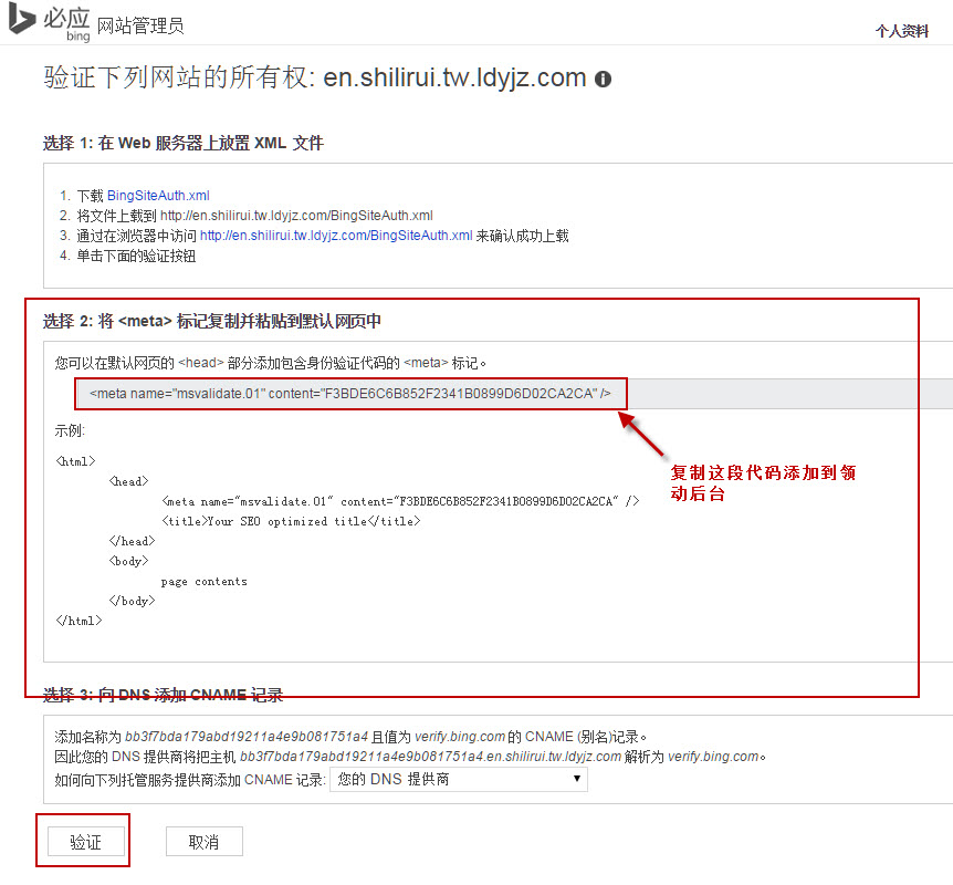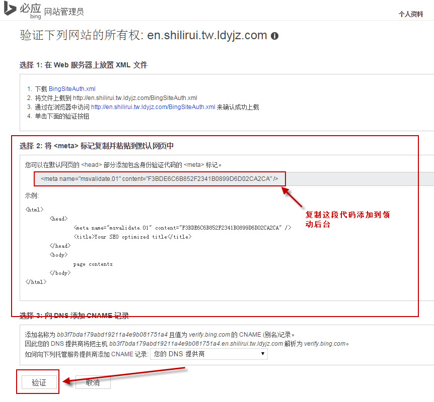 第二步:做站点验证,验证网站归您所有。验证步骤如下: