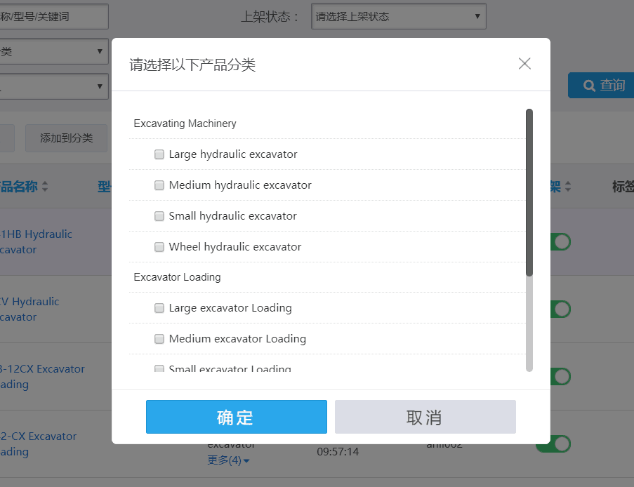 选择产品需要增加的分类,然后点击确定。