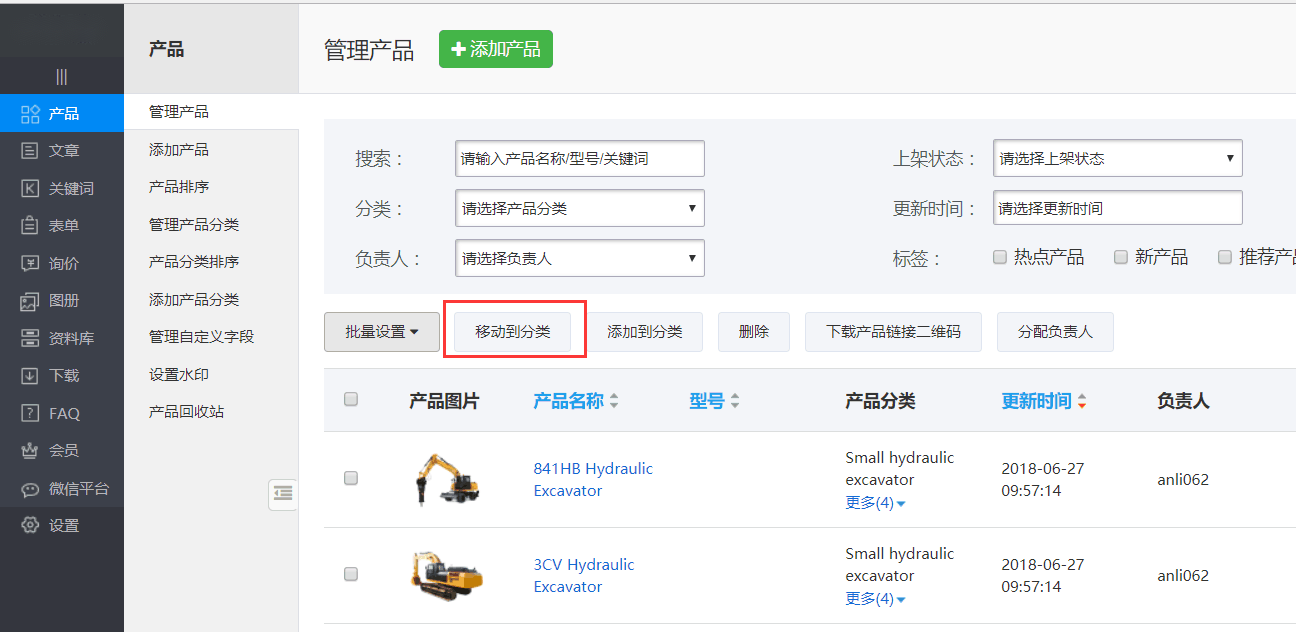 2.移动分类,给产品换个产品分类