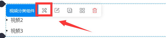 一、首先点击蓝色小水滴,添加视频分类组件,如下图所示: