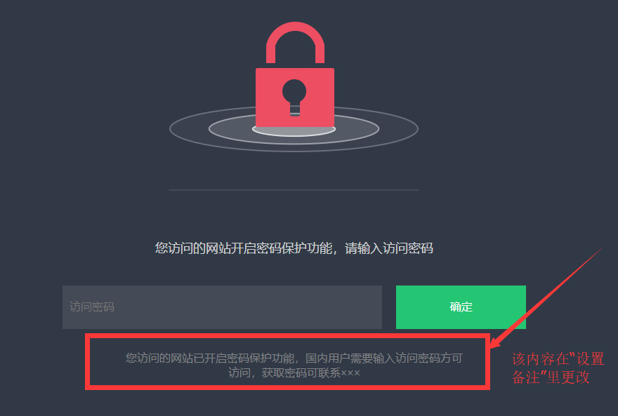 补充说明:“设置备注”(属于页面提示语,作用是可以用来告知访客该页面所呈现的情况或者告知访客访问页面的方式等)