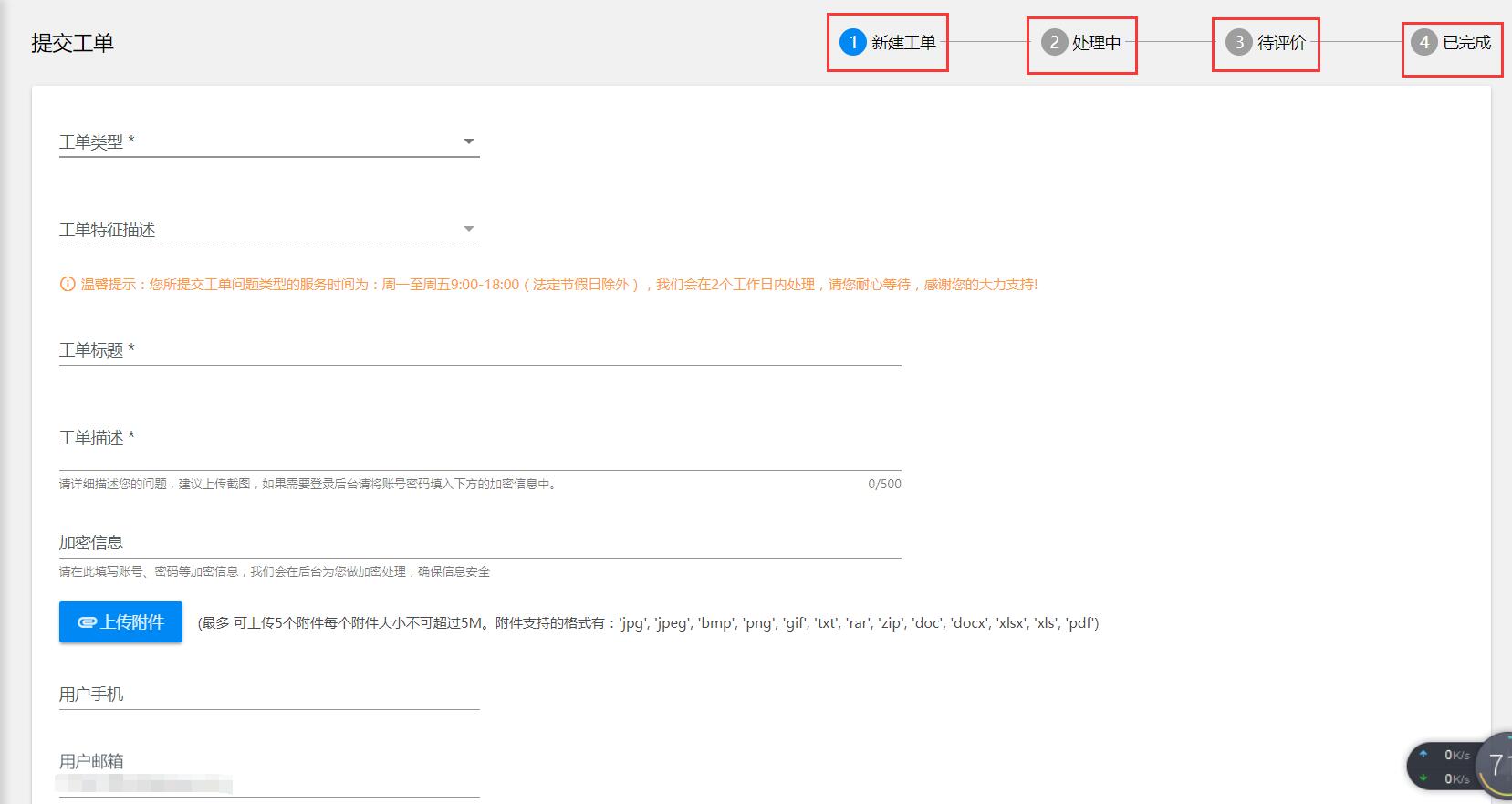点开提交工单的页面之后,按照页面提示填写工单内容;