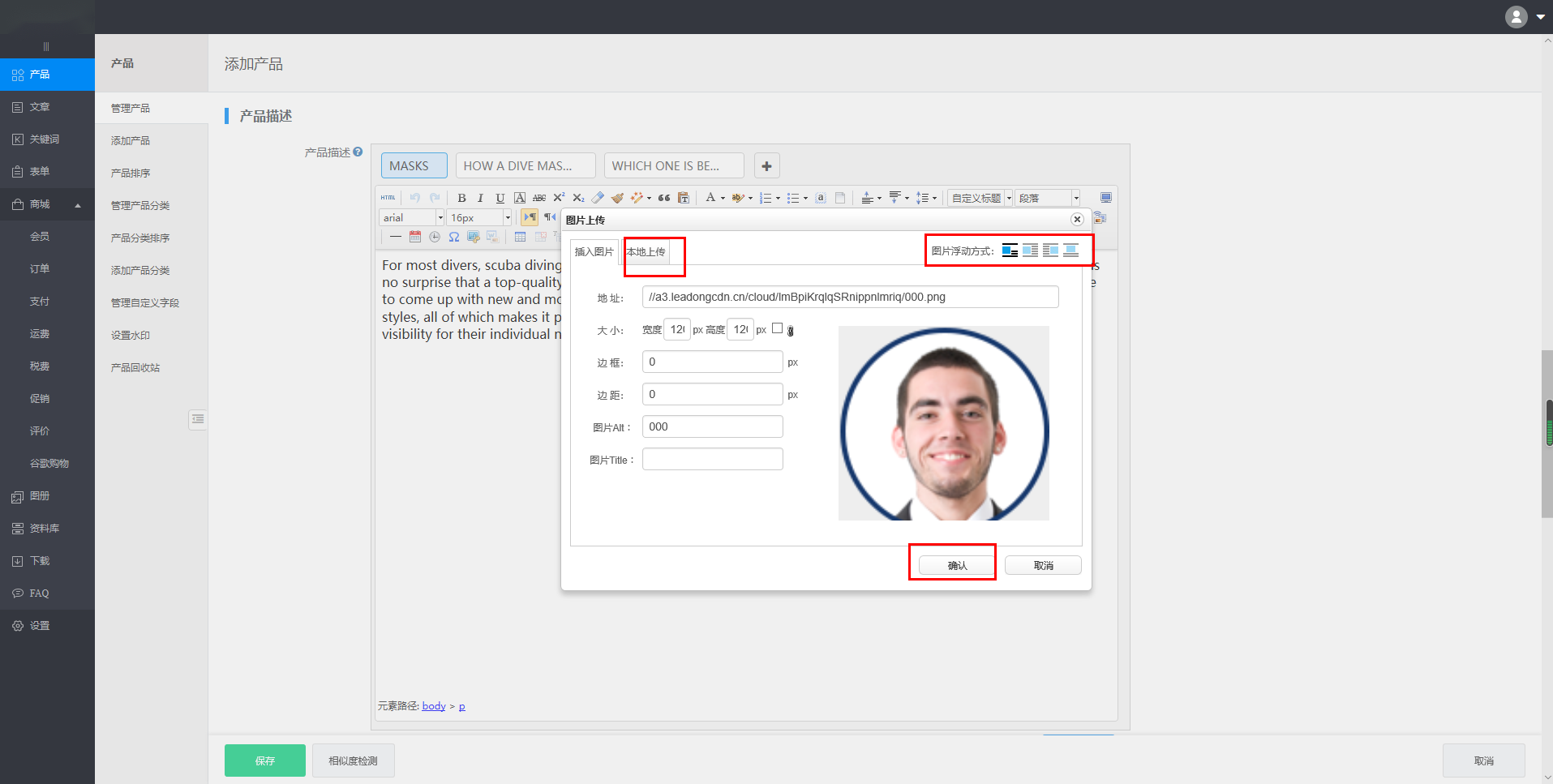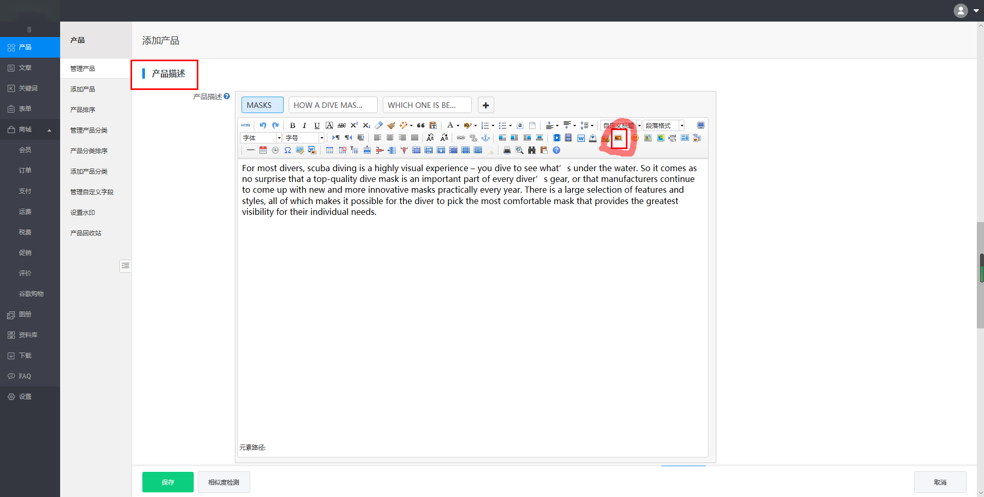 首先咱们先来了解下如何在产品描述中添加图片