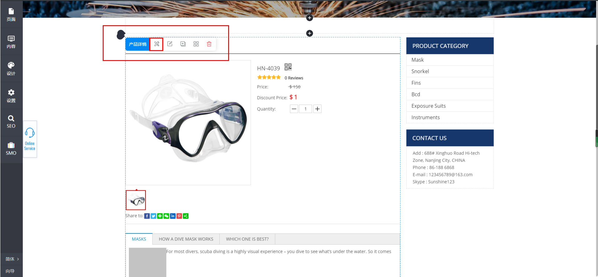 Step5:在添加好图片之后,进入网站编辑后台,在页面中选择“Product Detail”页面