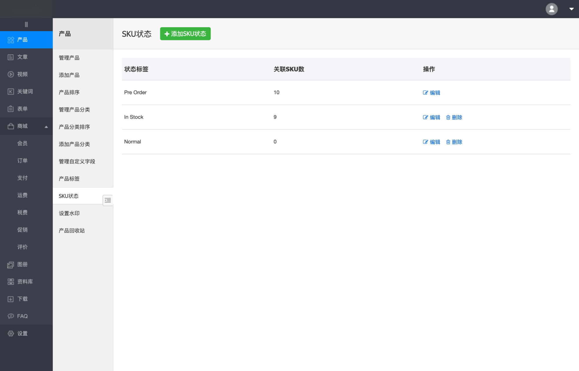 (1)在内容管理后台产品-SKU状态设置中,可以查看已创建的状态标签;