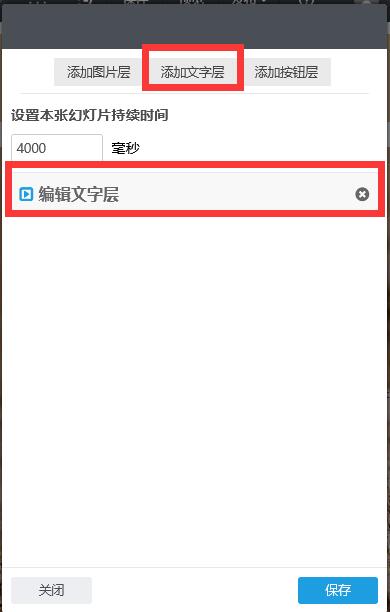 第三步:如已添加了文字层,则点击编辑文字层;如还未添加文字层,则可点击添加文字层添加在高级幻灯片上展示的文字,如下图所示: