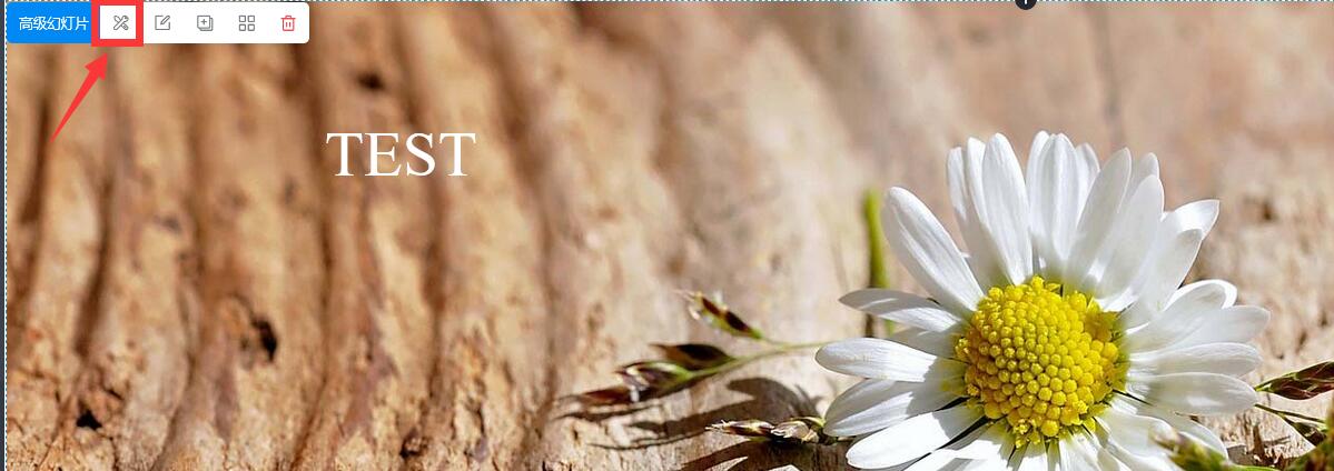第一步:点击高级幻灯片组件的设置按钮,如下图所示: