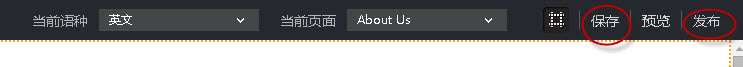 第三步:单击右上角的“保存”,保存为后台的最新版本;单击“发布”,发布到网站前台。