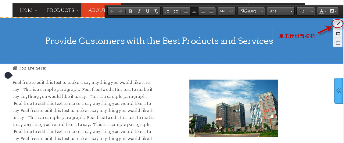 第一步:把鼠标放到此文本区域,单击鼠标左键,在此文本区域右上角看到一排按钮,找到“行设置”按钮,如下图所示: