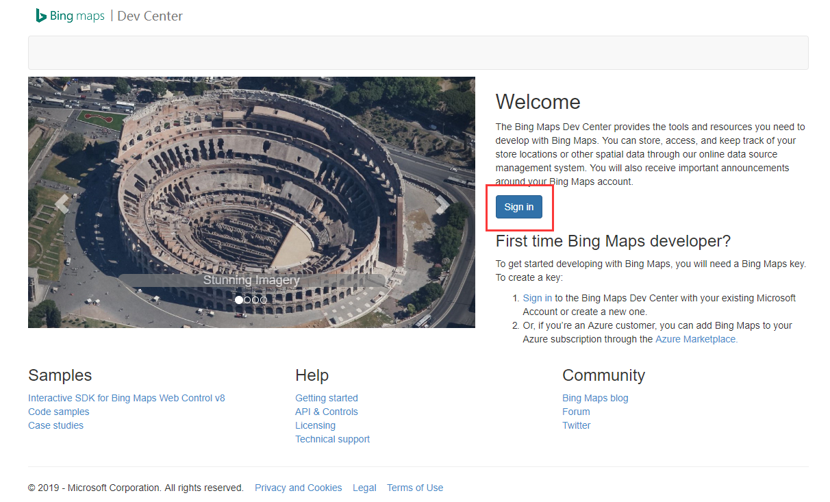 2.注册完成后,打开这个链接:www.bingmapsportal.com并选“sign in”登录Microsoft帐号