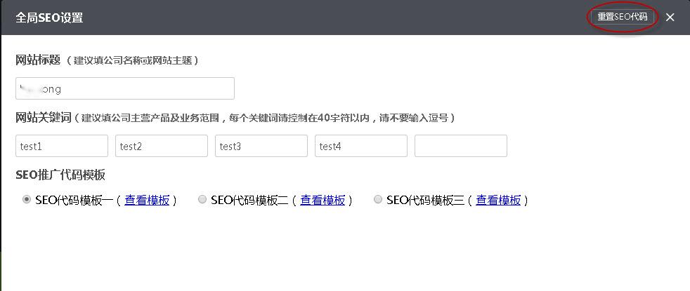 系统最多提供5次重置SEO推广代码的机会,您还有4次机会,请知晓!