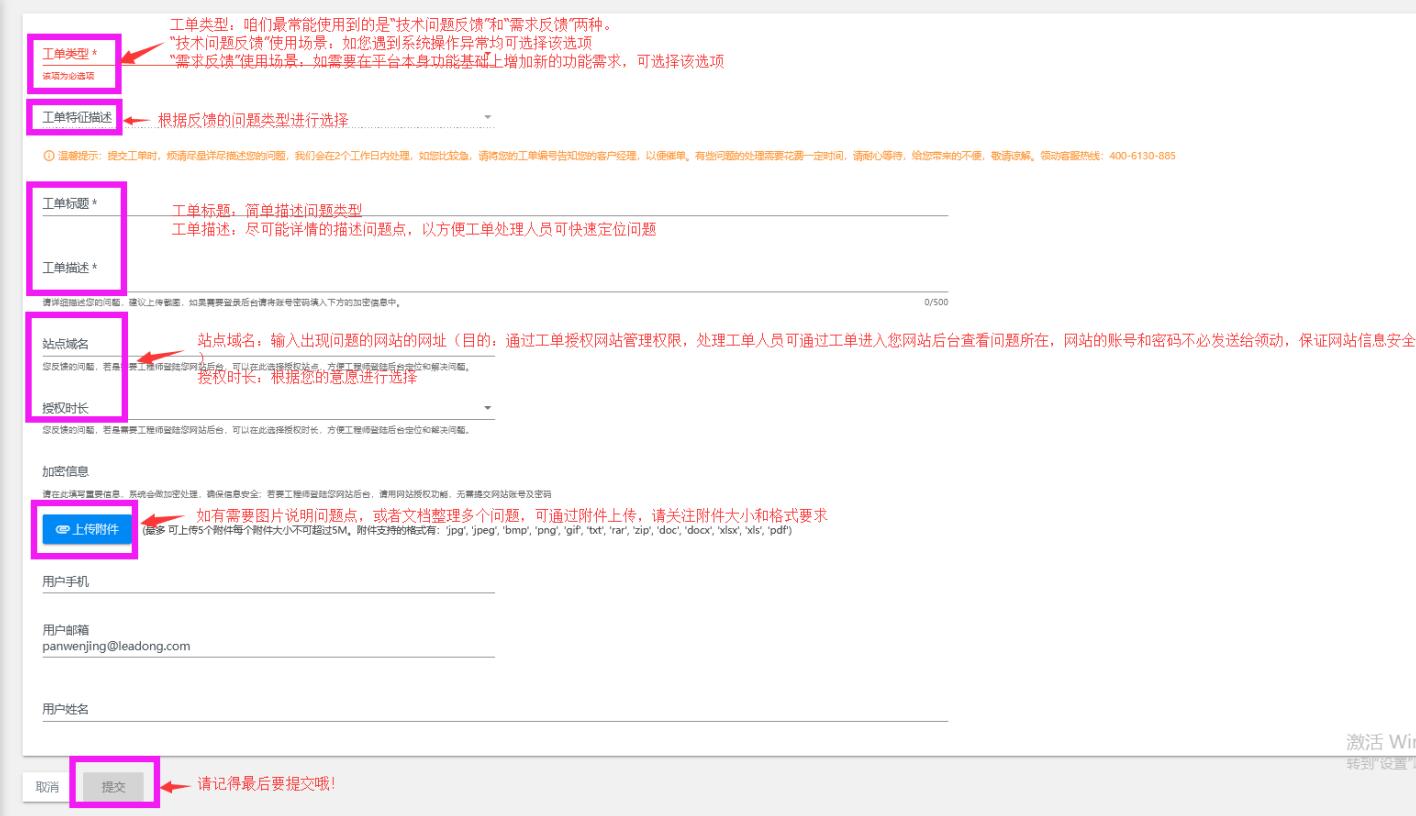 4.工单描述:尽可能详细的描述问题点,以便处理人员可快速定位问题。