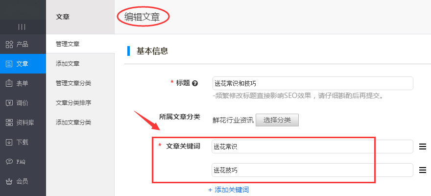 相关类型:同分类,是指与此文章在同一级的文章分类;关键词匹配,是指这篇文章设置了文章关键词,其它也设置了这些关键词的文章会被列出来,文章关键词设置位置在文章编辑页面下图所示位置: