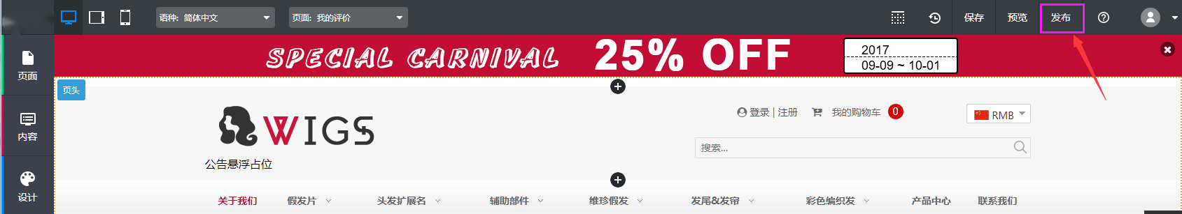 第3步:以上操作完成以后,单击页面右上角的“发布”按钮。
