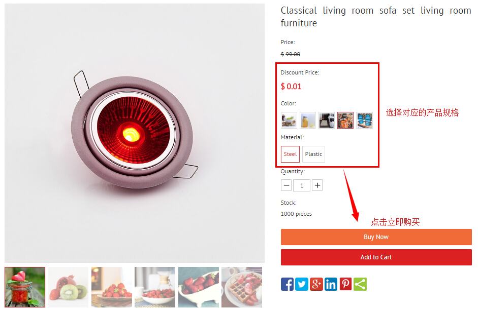 2、为了测试在线支付的需求,建议将某个测试产品的价格调成0.01美元,然后选择购买,如下截图所示示例效果: