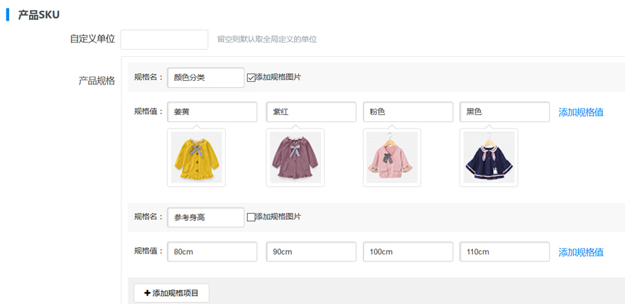 【应用效果】按需要添加产品规格信息,如下截图所示: