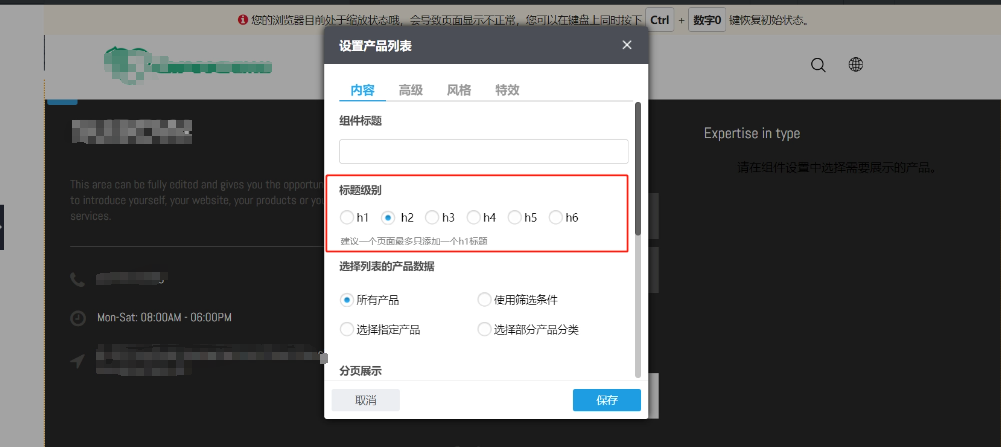 功能描述:为了用更灵活的方式实现网站的SEO优化,产品、文章、图文展示组件支持设置标题的Html标签。