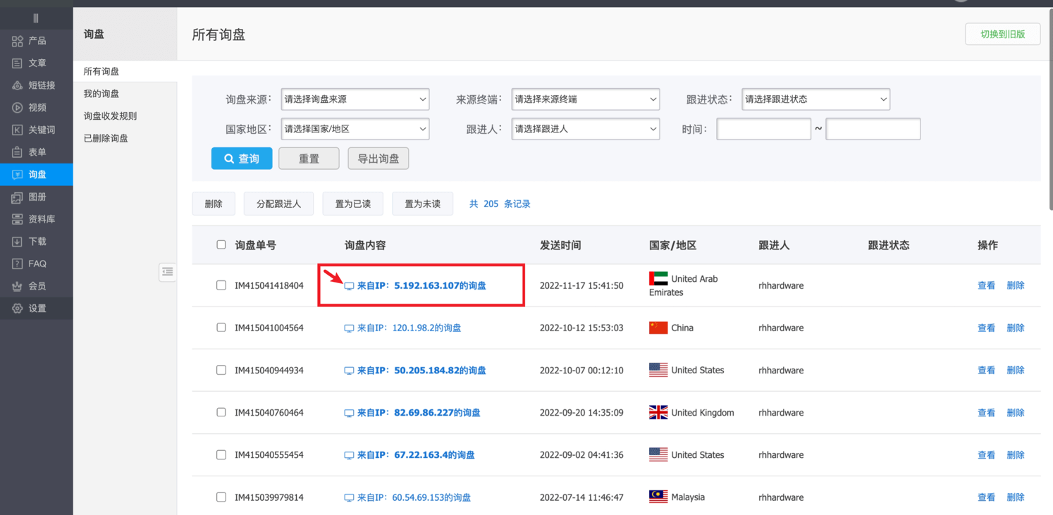 2、优化内容管理后台-询盘管理列表,新增展示询盘客户的设备终端图标;